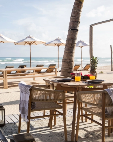 Acceso a la playa con área designada para miembros; se permiten alimentos y bebidas