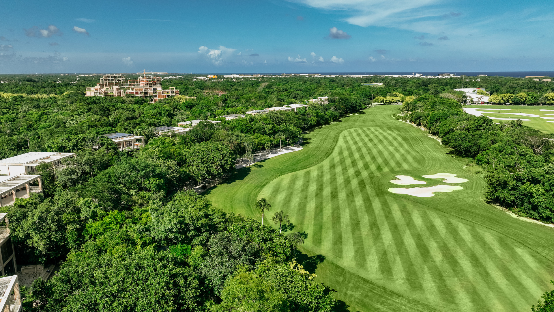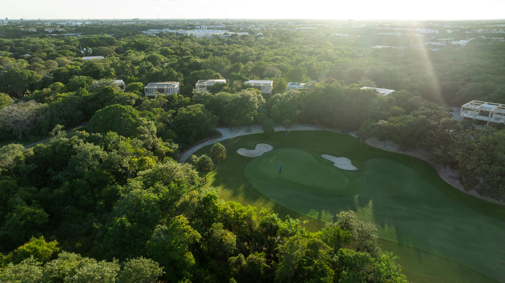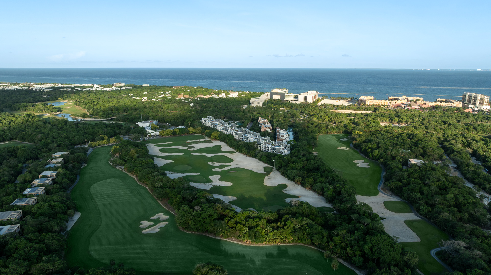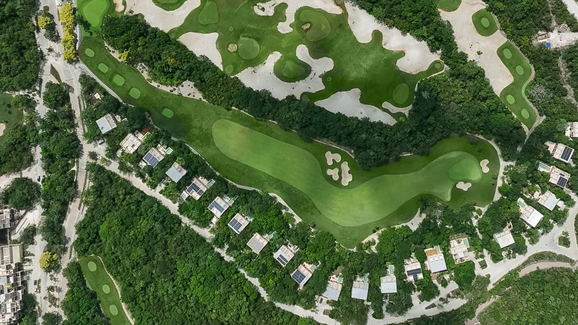 A short hole, good for starting a second round, with a dog leg to the left that has two bunkers on the left, a at green with bunkers on the right and at the back, ideal for a par or a birdie.